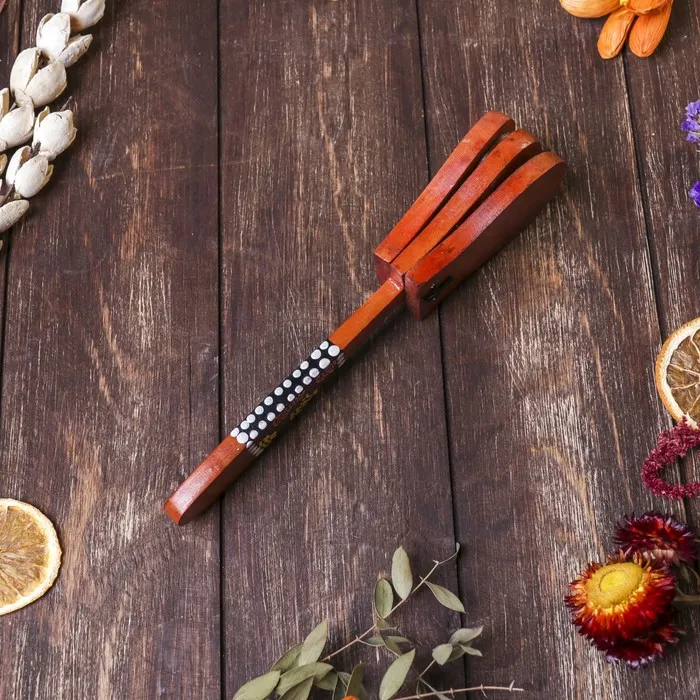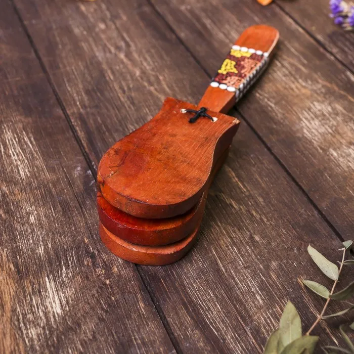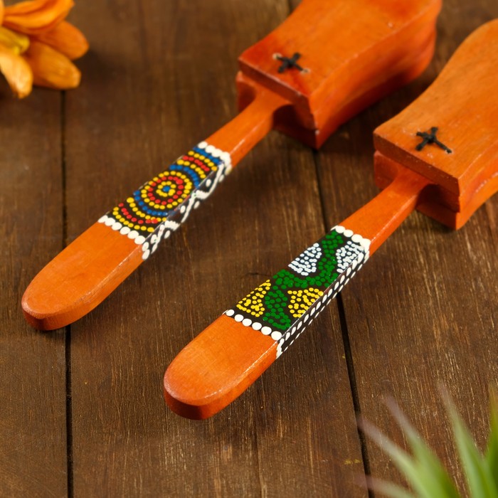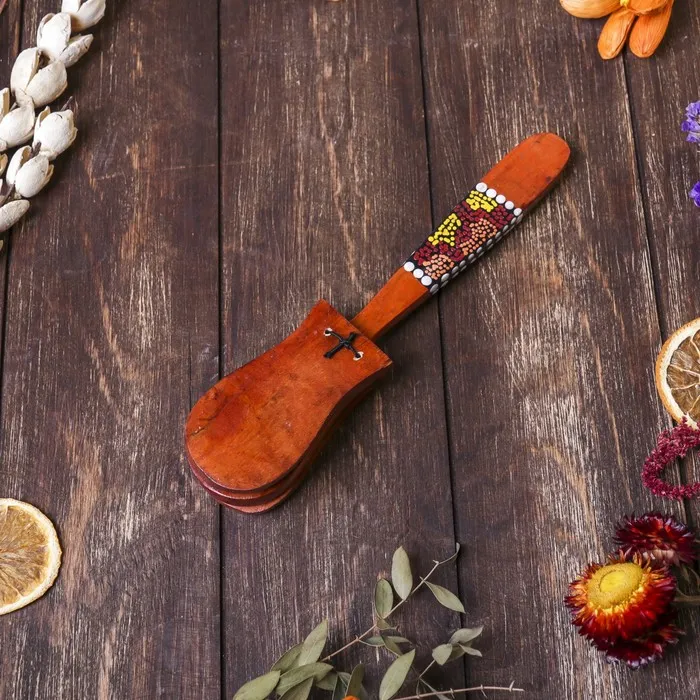 Сувенирный музыкальный инструмент дерево "Кастаньет с узором" 4x5x23 см — Характеристики