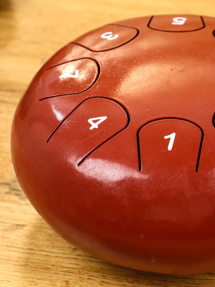 - 8 настроенных лепестков дают гармоничную пентатоническую гамму — играть легко, даже без музыкального опыта.