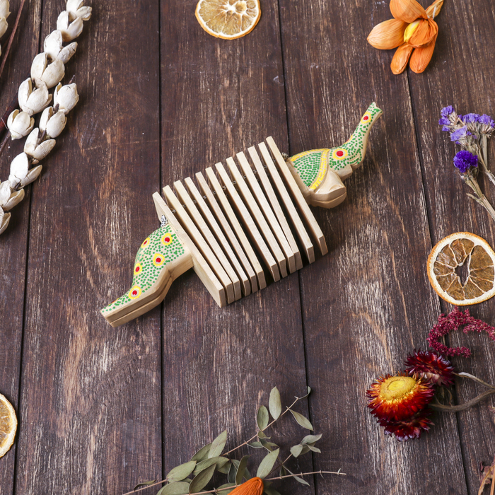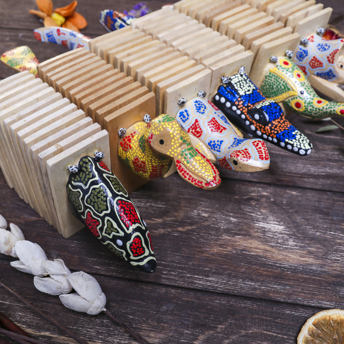 Сувенирный музыкальный инструмент "Трещотка крокодил пятнистый" дерево 4x27x9 см МИКС — Характеристики