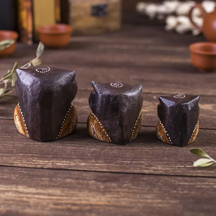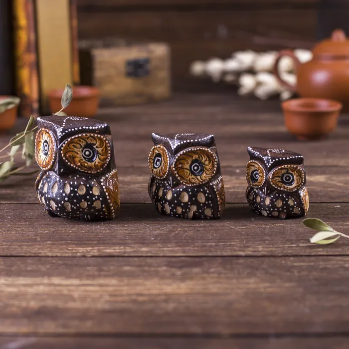 Сувенирный набор дерево "Совы с точечным узором"(3 шт) 6х14х7 см — Характеристики