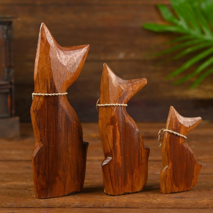 Сувенирный набор «Коричневые кошечки», высота 20 см, 15 см, 12 см, дерево — Характеристики