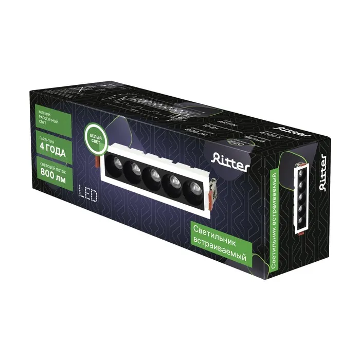 Светильник встраиваемый, ARTIN, прямоугольный 148×45х55мм LED 10Вт 800Лм 4200К Al черный