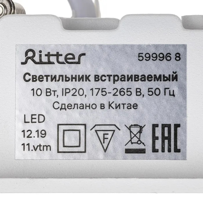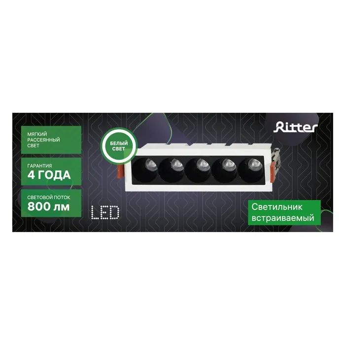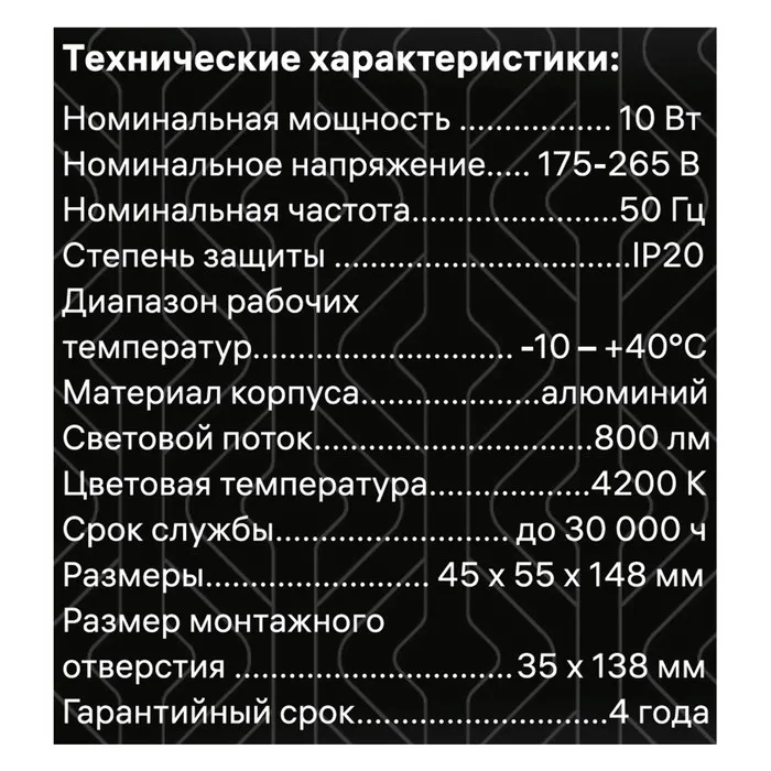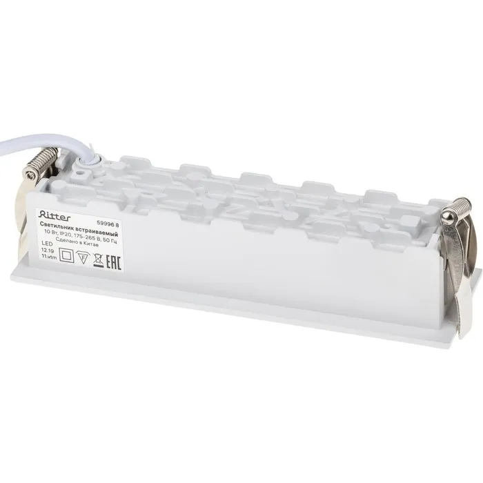 Св-к встраив-й, ARTIN, прямоугольный 148×45х55мм LED 10Вт 800Лм 4200К алюминий белый — Характеристики