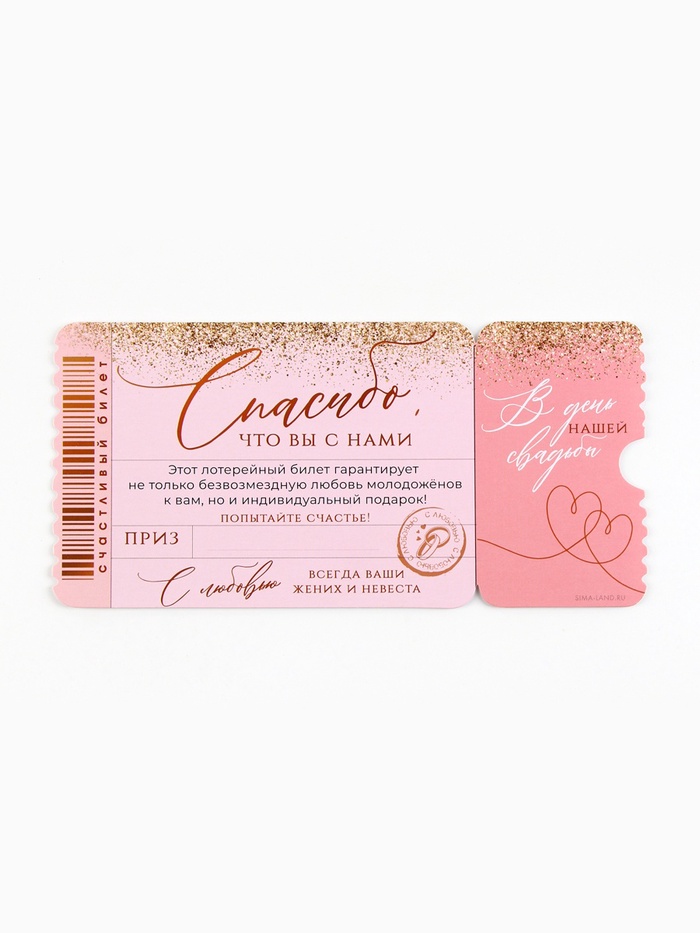 Свадебная лотерея «Спасибо, что вы с нами», 8×16.5 см — Характеристики