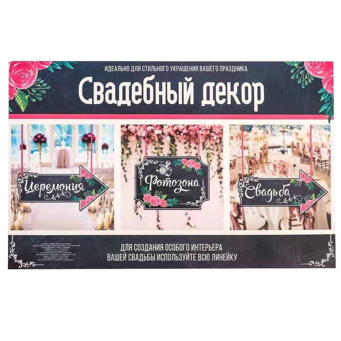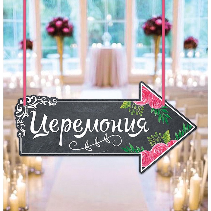 День свадьбы – это всегда небольшая, но приятная суматоха. Чтобы не заставлять гостей плутать в банкетном зале или на природе в поисках места проведения банкета, предлагаем использовать специальную табличку, которая станет не только прекрасным декором, но и поможет прибывшим гостям сориентироваться в пространстве.