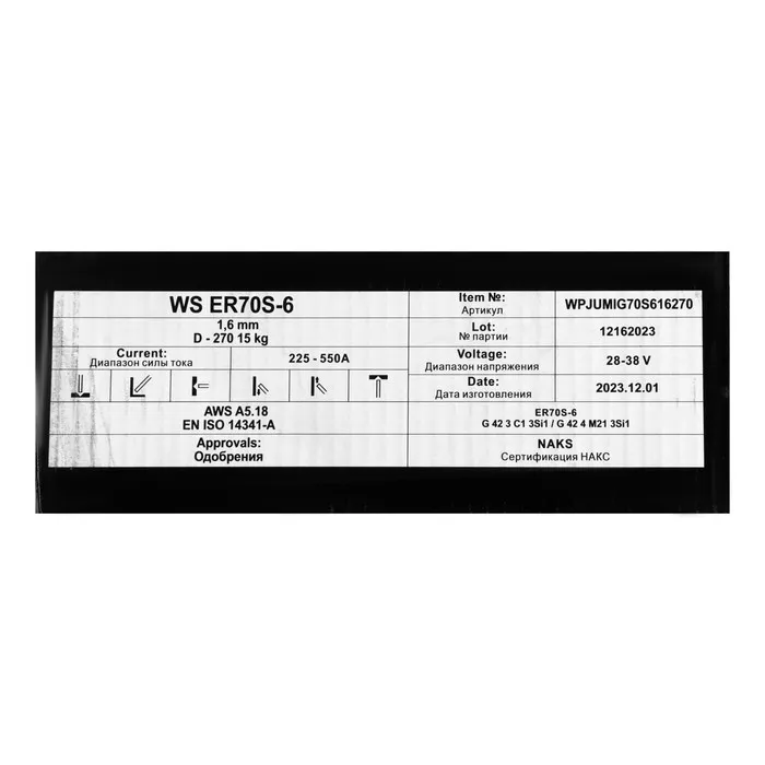 Сварочная проволока WS WELDESHIP, ER=70S-6, омедненная, d=1.6 мм, 15 кг — Характеристики