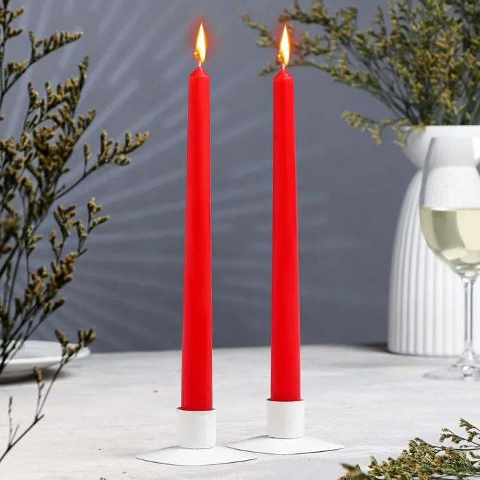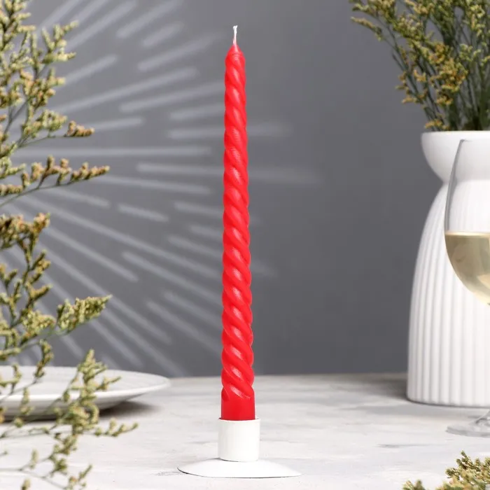 Набор свечей витых, 2,2х 25 см, лакированная 2 штуки, красный