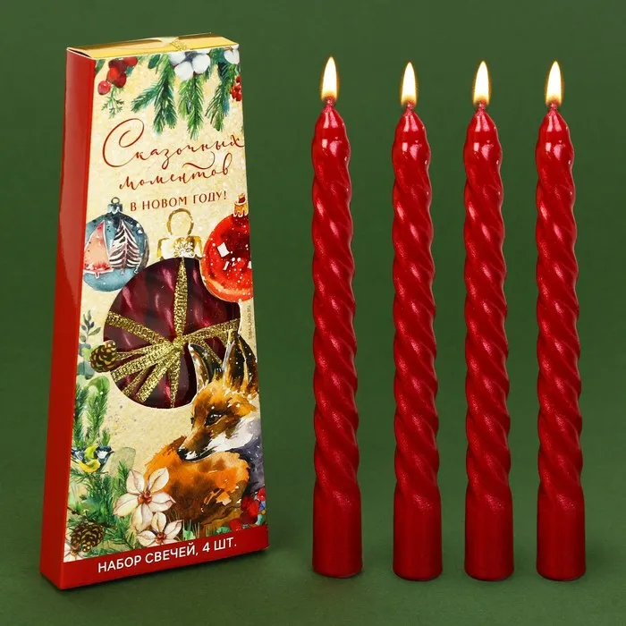 Свечи новогодние витые, набор «Сказочных моментов», на Новый год, 4 шт, красные, 14,5 х 1,5 см