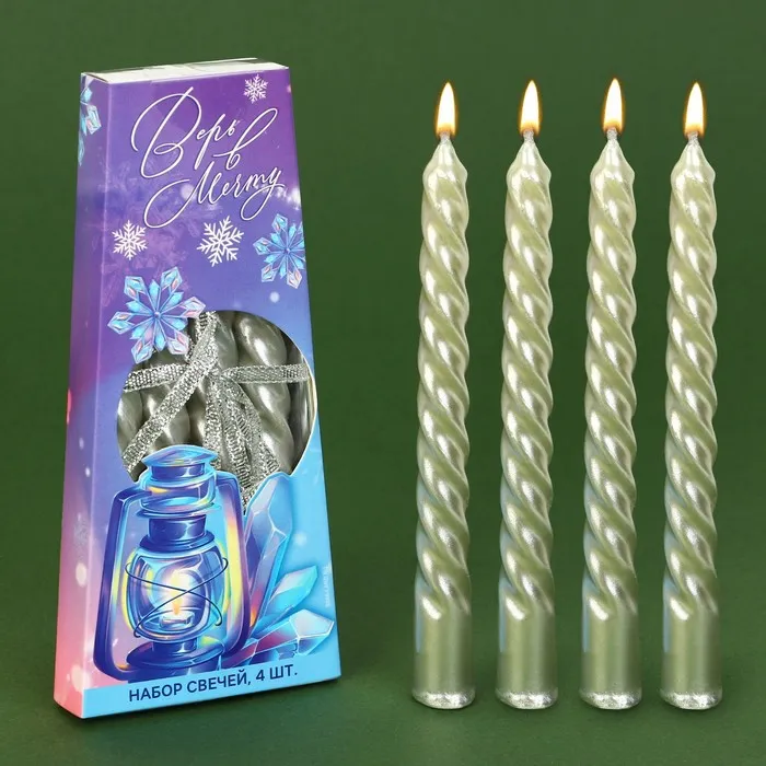 Свечи новогодние витые, набор «Счастья в Новом году», 4 шт, серебряные, 14,5 х 1,5 см