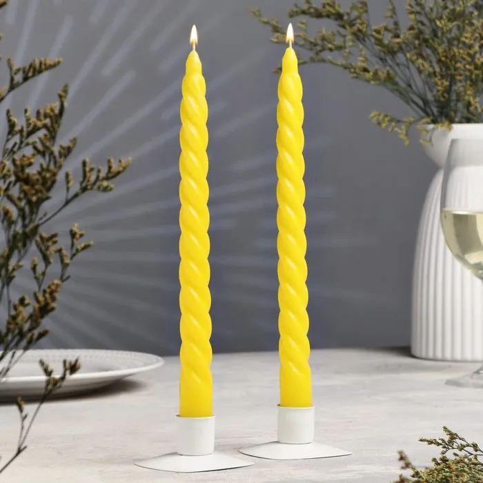 Набор свечей витых, 2,2х 25 см, лакированная 2 штуки, жёлтый