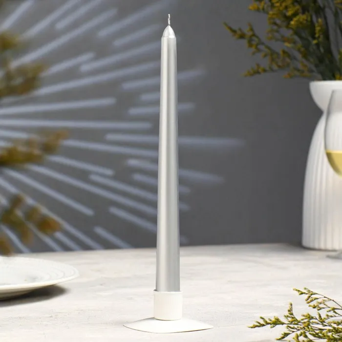 Свеча античная, 2,3х 25 см, лакированная , серебряный металлик