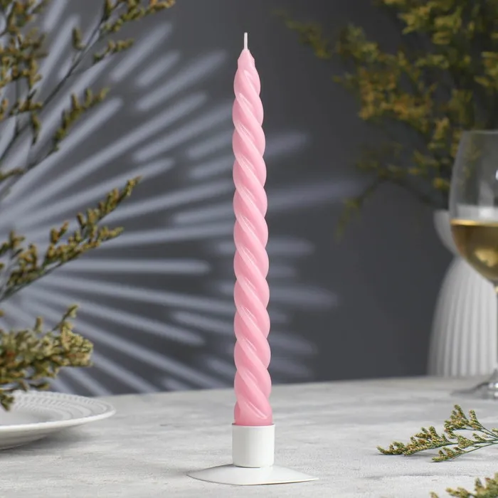 Набор свечей витых, 2,3х 24,5 см, 5 ч, 50 г, 4 штуки, светло-розовый