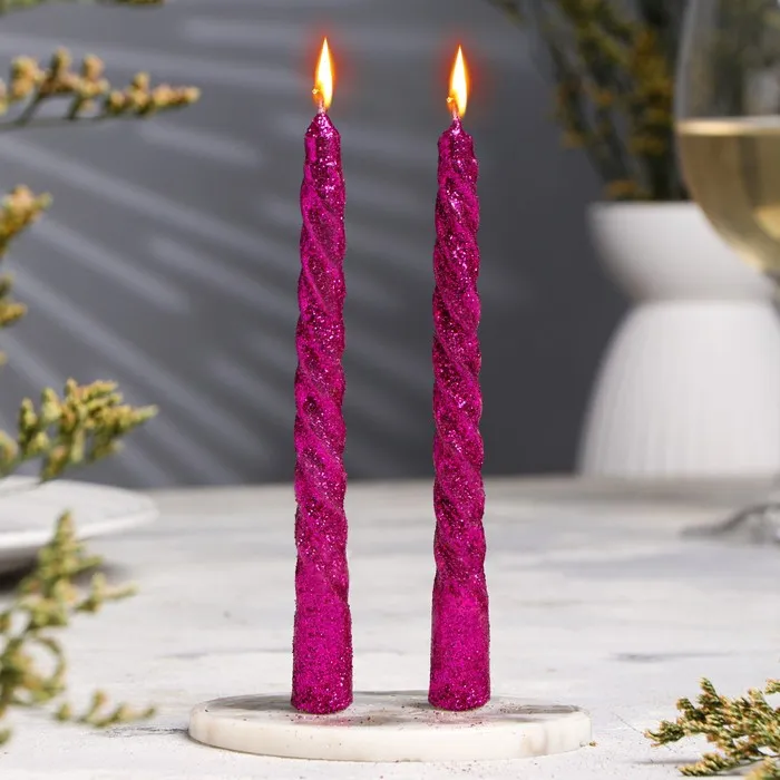 Набор свечей витых, 1,5х 15 см, 2 штуки, блестка, сиреневый