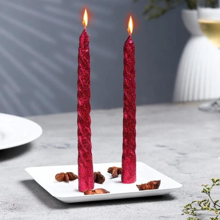 Набор свечей витых, 1,5х 15 см, 2 штуки, блестка, красный