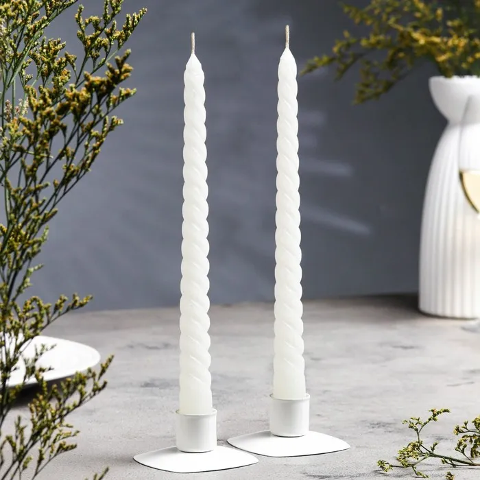 Набор свечей витых, 2,2х 25 см, лакированная 2 штуки, белый