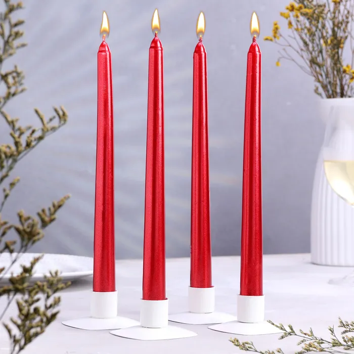 Свеча античная, 2.3×25 см, 4 шт., лакированная, красный металлик — Характеристики