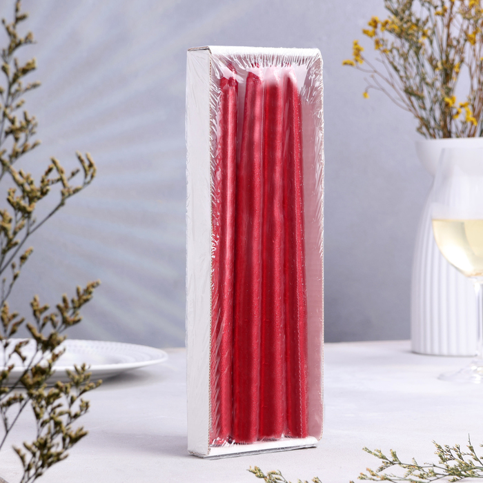 Свеча античная, 2.3×25 см, 4 шт., лакированная, красный металлик