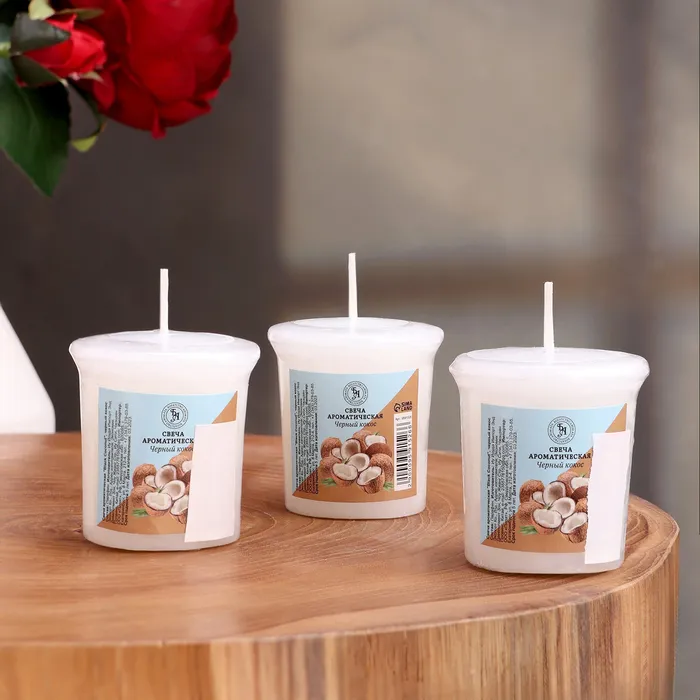 Свеча ароматическая "Black Coconut", черный кокос, набор 5х4,5 см, 3 шт — Характеристики