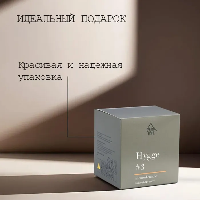 Свеча ароматическая "Hygge" #3 Табак/бергамот, соевый воск, в банке, 90 г — Характеристики