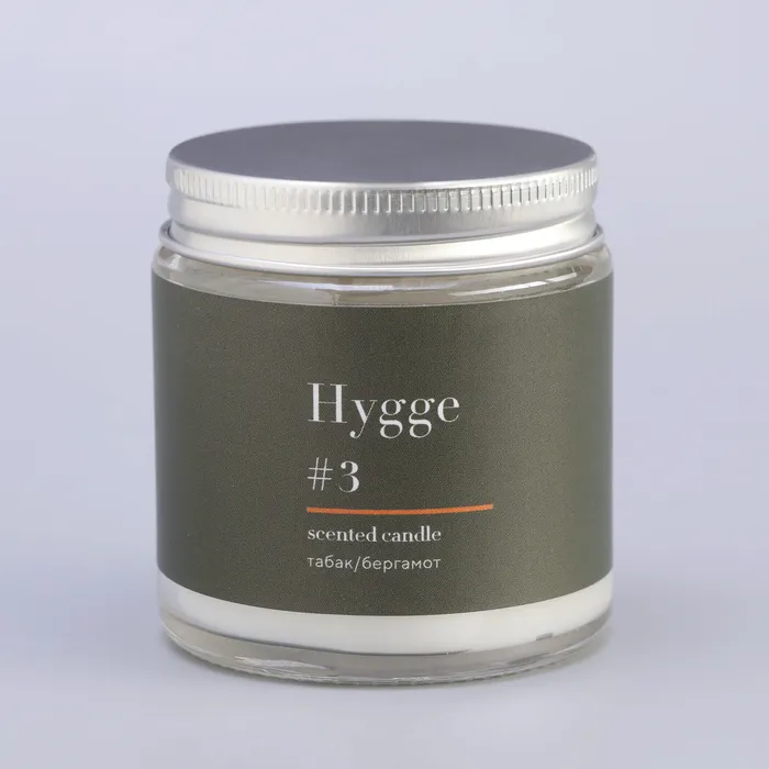 Свеча ароматическая "Hygge" #3 Табак/бергамот, соевый воск, в банке, 90 г