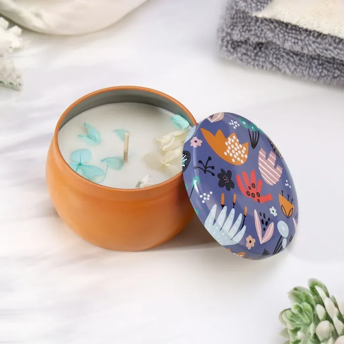 Свеча ароматическая из соевого воска с сухоцветом "Фрезия", 4,5х6 см, 80 г
