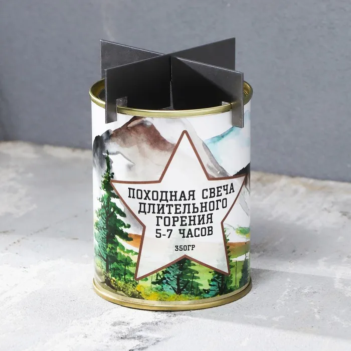 Свеча походная в жестяной банке «Звезда», 7.5×9.5 см, тип №1