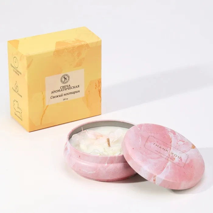 Свеча ароматическая из соевого воска с сухоцветом "Свежий нектарин", 3х8,5 см, 110 г — Характеристики
