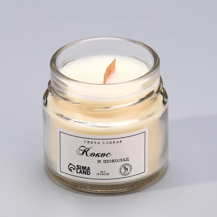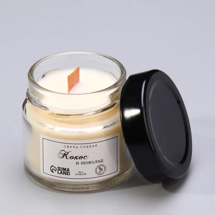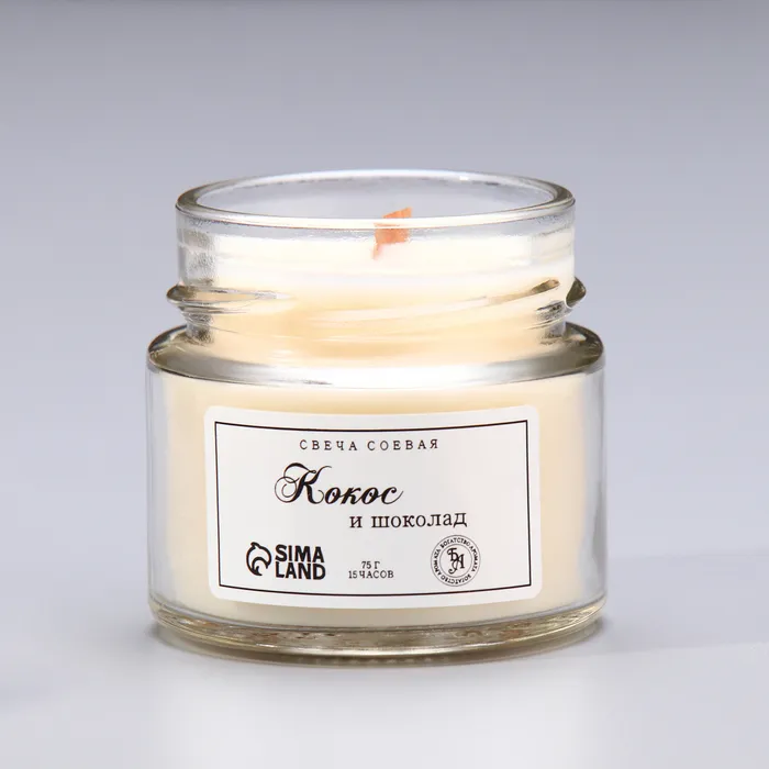 Свеча ароматическая из соевого воска в банке, 75 г, кокос и шоколад — Характеристики