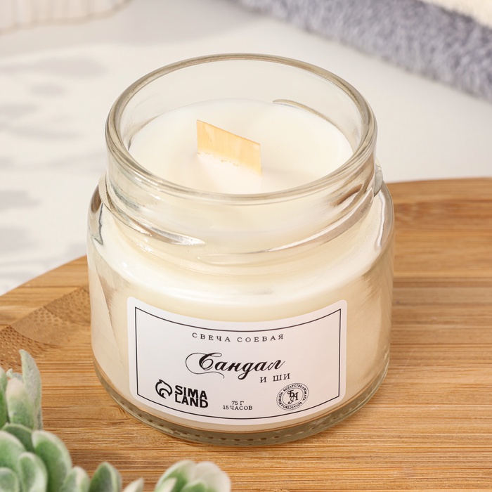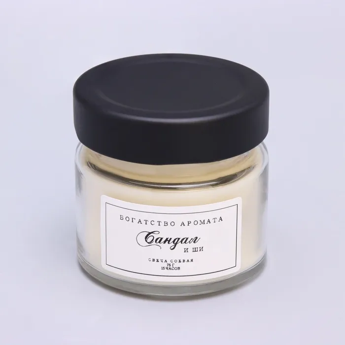 Свеча ароматическая из соевого воска в банке, 75 г, сандал и ши