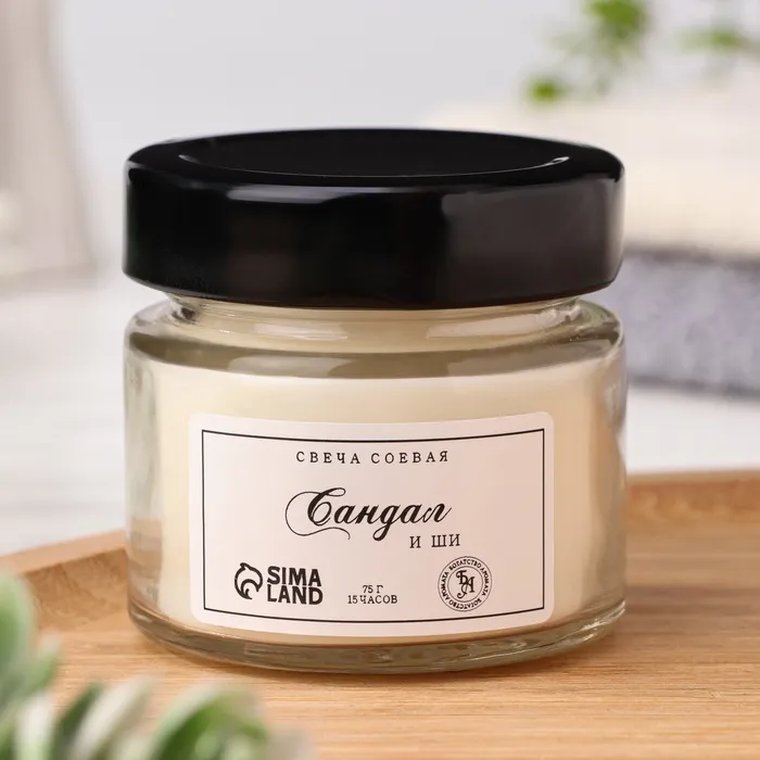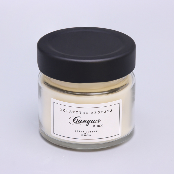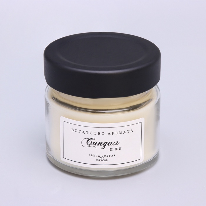 Свеча ароматическая из соевого воска в банке, 75 г, сандал и ши — Характеристики