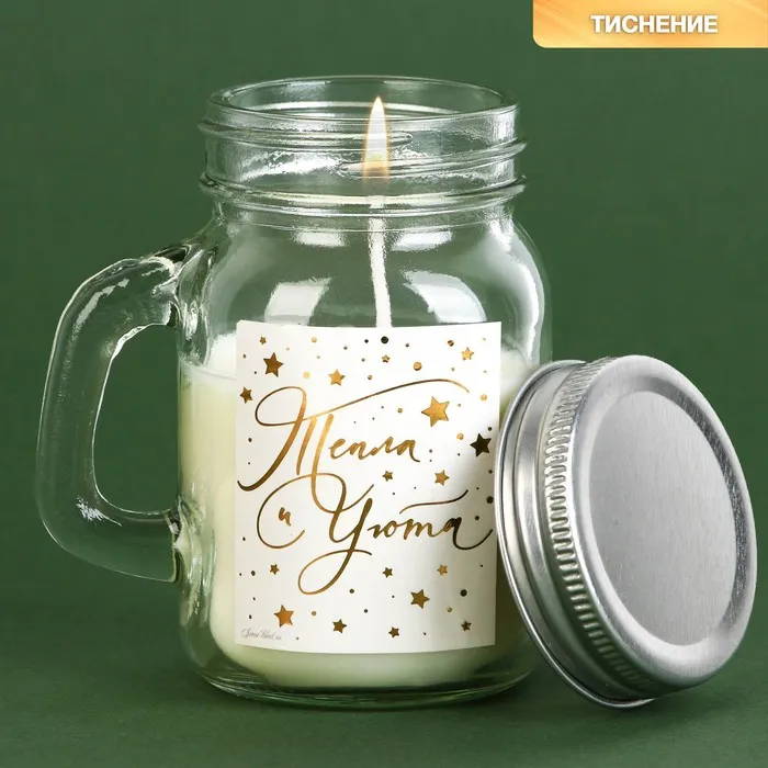 Свеча для интерьера вашего дома (7 х 5 х 8,5 см). Лучше всего наша свеча подходит для оригинального подарка и для декора. Внутренняя атмосфера дома наполняется волшебным теплом и уютом при потрескивании горящей свечи. Данный интерьерный элемент создаёт ощущение распаленного камина. Фитиль горит размеренно и не коптит. Декор для дома впишется в любой интерьер. Восковая, декоративная свеча оформлена в прозрачную банку из жаропрочного стекла, что выглядит красиво и необычно.