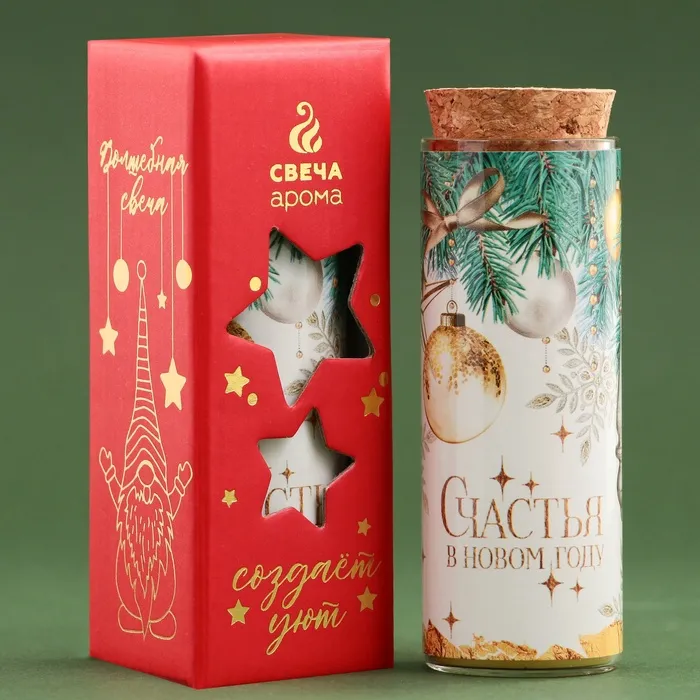Свеча ароматическая новогодняя «Счастья», аромат миндаль, 8,5 х 2,9 см — Характеристики
