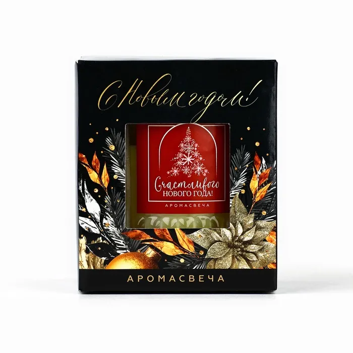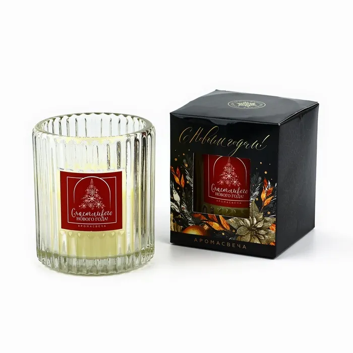 Свеча ароматическая новогодняя «Счастливого нового года», аромат корица, 7,5 х 8,6 см — Характеристики