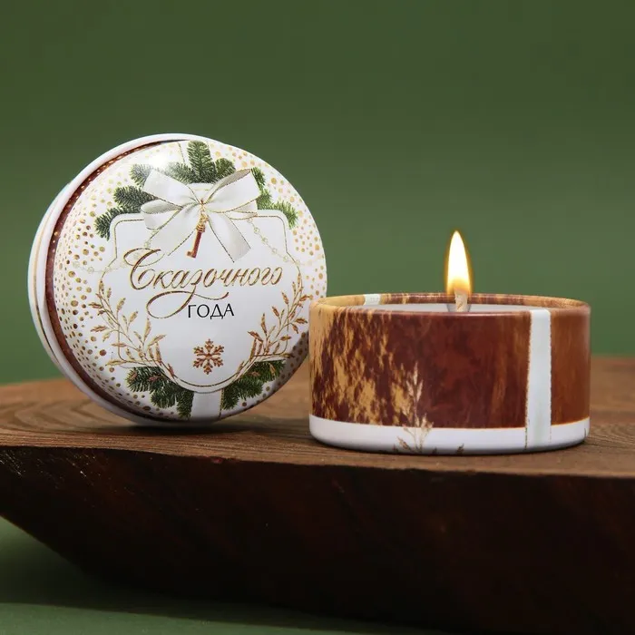 Свеча для интерьера вашего дома, с ароматом (4,5 х 4,5 х 2,5 см). Лучше всего наша свеча подходит для оригинального подарка и для декора. Внутренняя атмосфера дома наполняется волшебным теплом и уютом при потрескивании горящей свечи. Данный интерьерный элемент создаёт ощущение распаленного камина. Фитиль горит размеренно и не коптит. Декор для дома впишется в любой интерьер. Свеча состоит из парафина, оформлена в железную баночку с эксклюзивным дизайном, что выглядит красиво и необычно. Такой сувенир поможет не только украсить новогодний интерьер, но и порадовать ваших близких и друзей, если использовать свечу как дополнение к подарку.