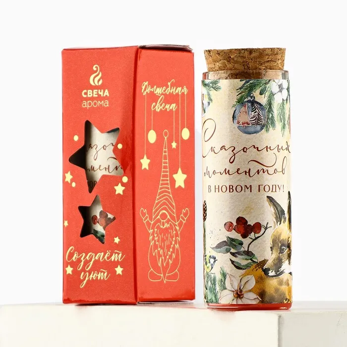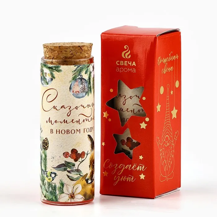 Свеча ароматическая новогодняя «Сказочных моментов», аромат вишня, 8,5 х 2,9 см — Характеристики