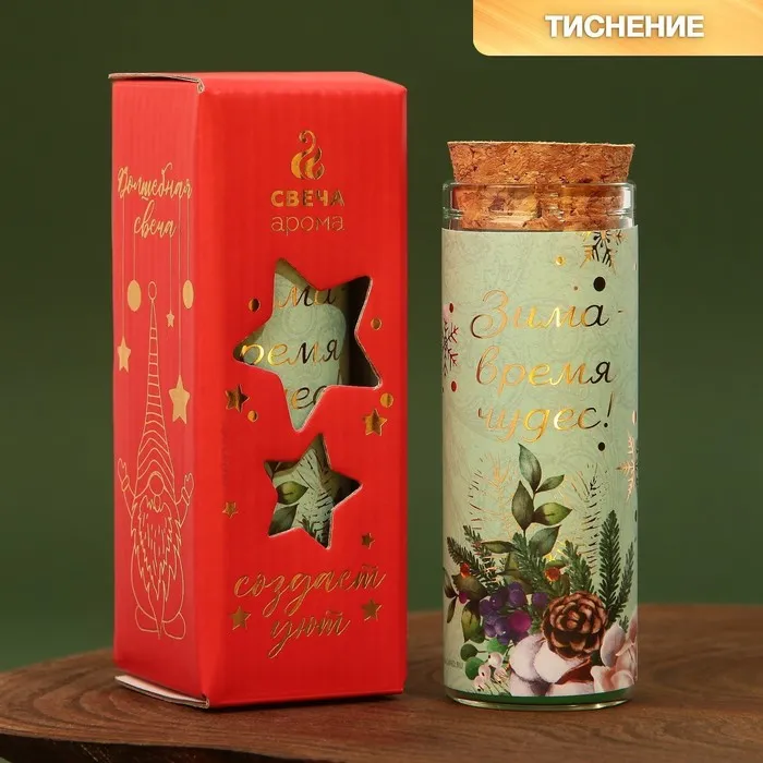 Свеча для интерьера вашего дома, с ароматом (3 х 3 х 8 см). Лучше всего наша свеча подходит для оригинального подарка и для декора. Внутренняя атмосфера дома наполняется волшебным теплом и уютом при потрескивании горящей свечи. Данный интерьерный элемент создаёт ощущение распаленного камина. Фитиль горит размеренно и не коптит. Декор для дома впишется в любой интерьер. Свеча выполнена из парафина, оформлена в прозрачную колбу из жаропрочного стекла, что выглядит красиво и необычно. Товар надежно упакован в новогоднюю коробку (3,5 х 3,5 х 9,5 см), что послужит поводом для подарка родным и друзьям.