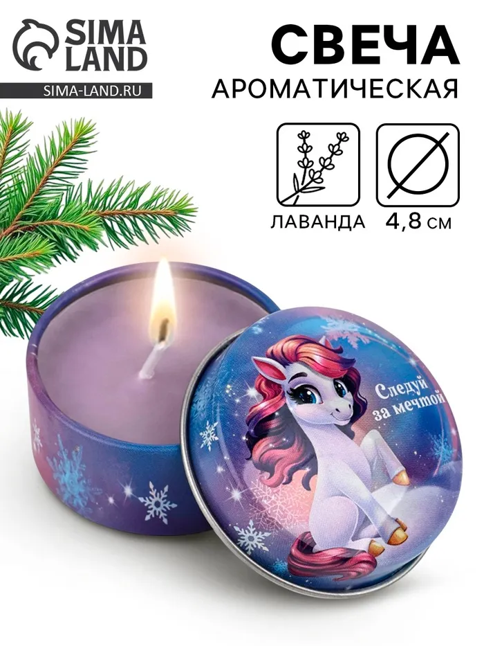 Свеча ароматическая новогодняя в банке «Следуй за мечтой» аромат лаванда, 4.8 см — Характеристики
