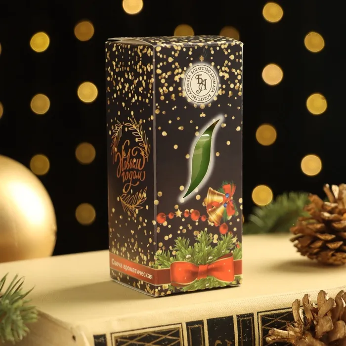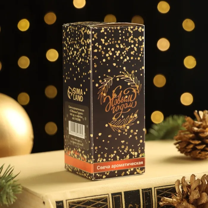 Свеча ароматическая «Счастливого Нового года», 4×6 см, пряное яблоко, в коробке — Характеристики