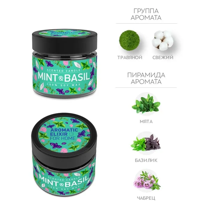 Свежий аромат с нотами мяты, базилика и чабреца создает уникальную атмосферу уюта и свежести. Пирамида аромата начинается с верхних нот мяты, переходит в сердце из базилика и завершается мятной прохладой в базовых нотах.