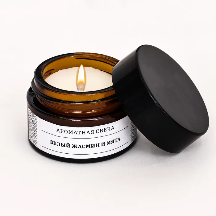 Свеча ароматическая в банке "Белый жасмин и мята", соевый воск, 12 г — Характеристики