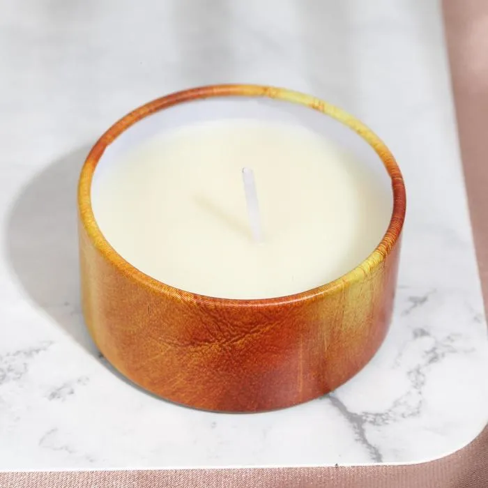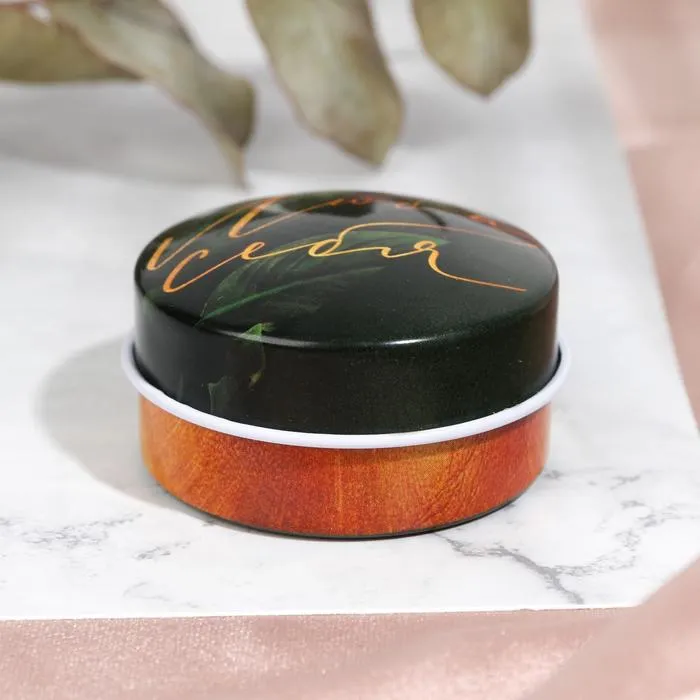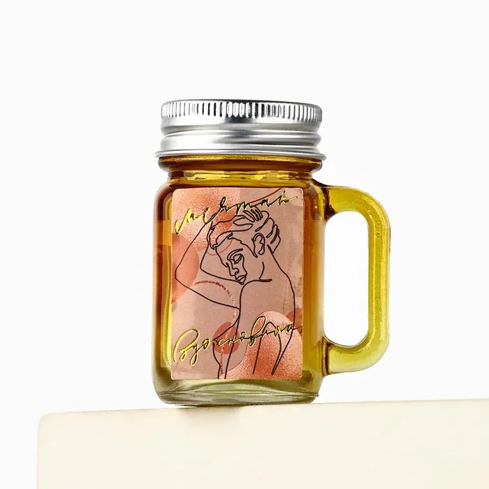 Банка, в которой находится свеча, украшена стильным изображением, а на крышке свечи выгравировано название.