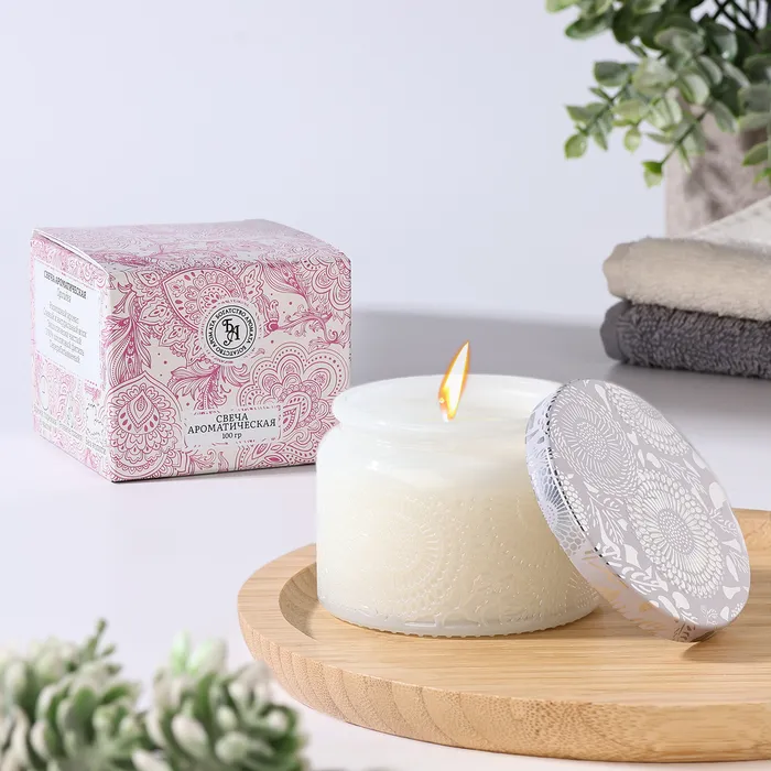 Свеча имеет нежный аромат и стильный дизайн, который станет прекрасным дополнением к любому интерьеру.