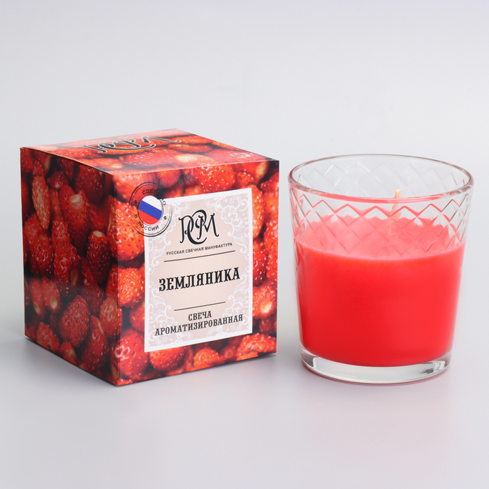 Свеча ароматическая в стакане "Земляника", подарочная упаковка, 8х8,5 см, 30 ч