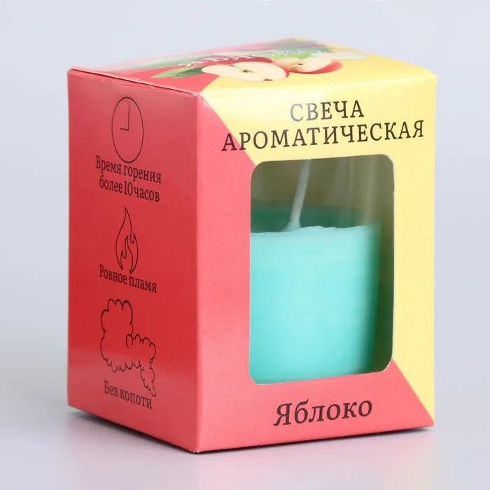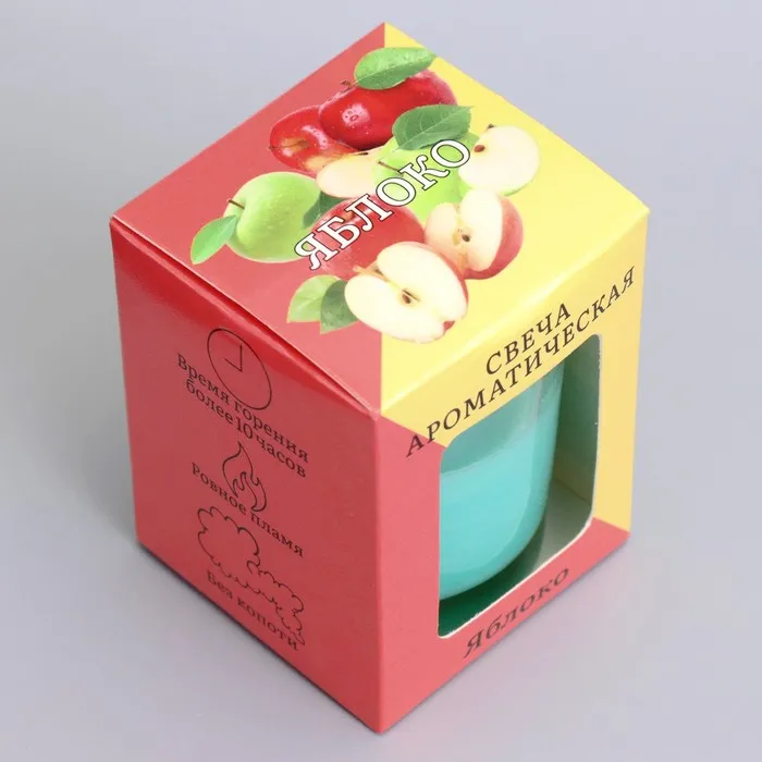 Ароматическая свеча «Яблоко» размером 5 × 6 см изготовлена из натурального соевого воска и имеет яркий аромат, который мгновенно наполняет комнату свежестью и теплом.
