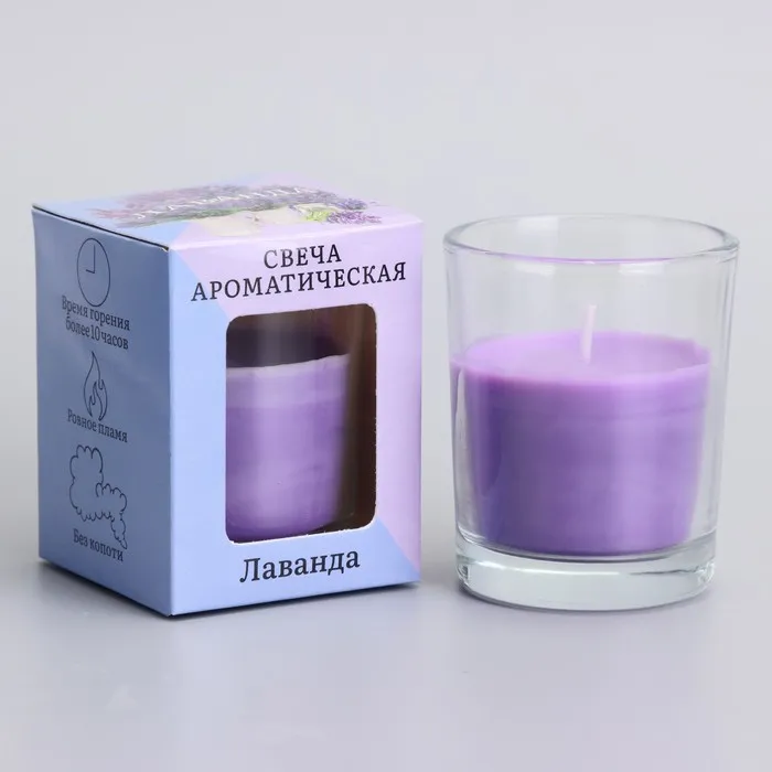 Ароматическая свеча «Лаванда» размером 5 × 6 см изготовлена из натурального соевого воска и имеет свежий аромат лаванды, который мгновенно наполняет комнату спокойствием и гармонией.