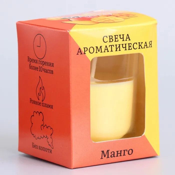 Ароматическая свеча «Манго» размером 5 × 6 см изготовлена из высококачественного воска, который обеспечивает равномерное горение на протяжении до 8 часов. Благодаря стильному дизайну она станет отличным дополнением к вашему интерьеру и прекрасным подарком для друзей и близких.