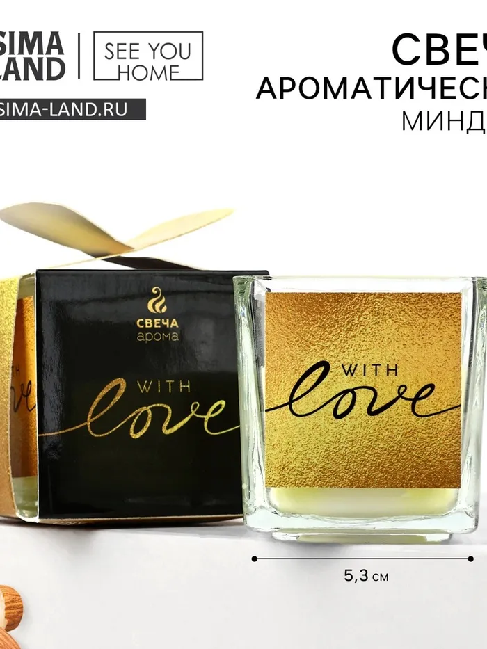 Ароматическая свеча With love, миндаль, 5.3×5.3×5.5 см