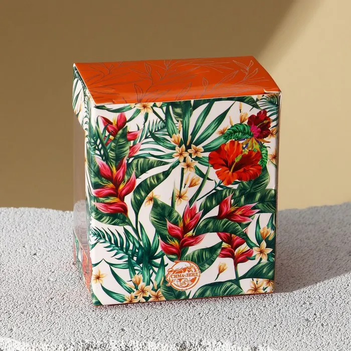 Упаковка с ярким тропическим рисунком добавит праздничного настроения.