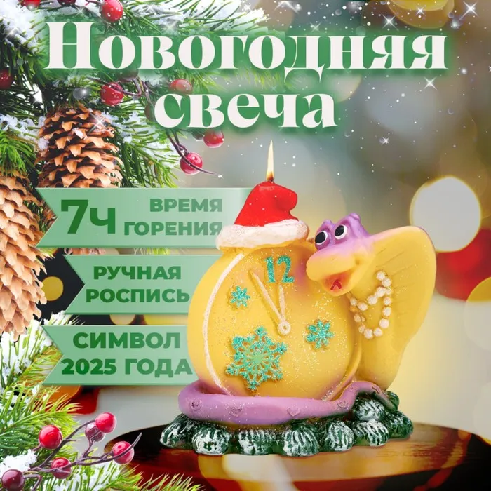 Свеча декоративная «Будильник новогодний. Змея», 7.5×6×9.5 см — Характеристики