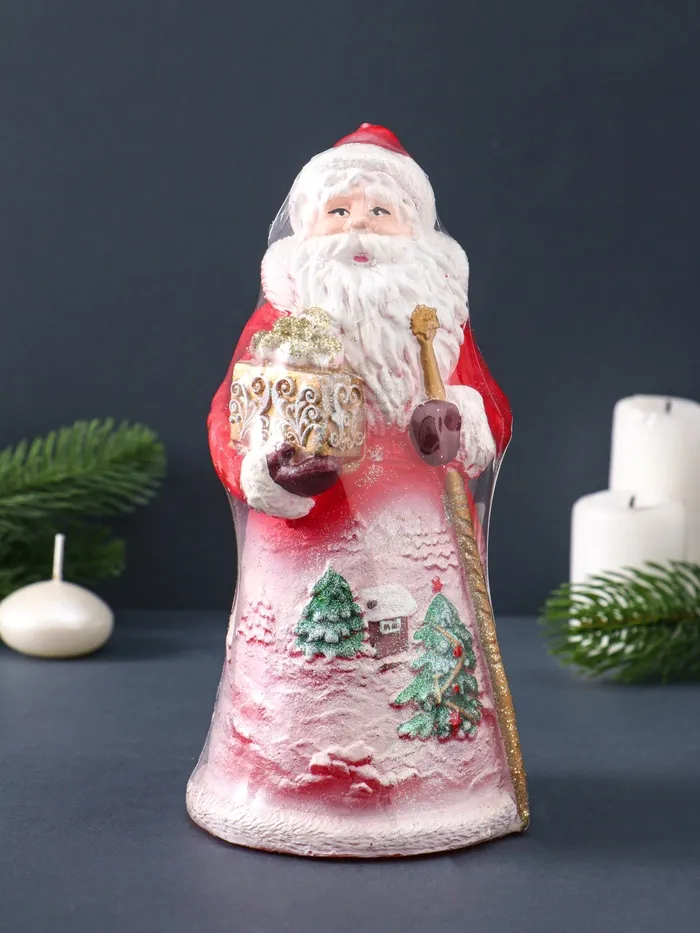 - Традиционный образ: Узнаваемый силуэт главного зимнего волшебника с мешком подарков создает по-настоящему праздничное настроение. Свеча станет центральным элементом рождественского украшения стола, каминной полки или комода.